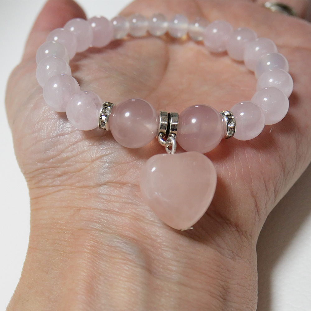 ローズクォーツをふんだんに使用した女性らしいブレスレットです。