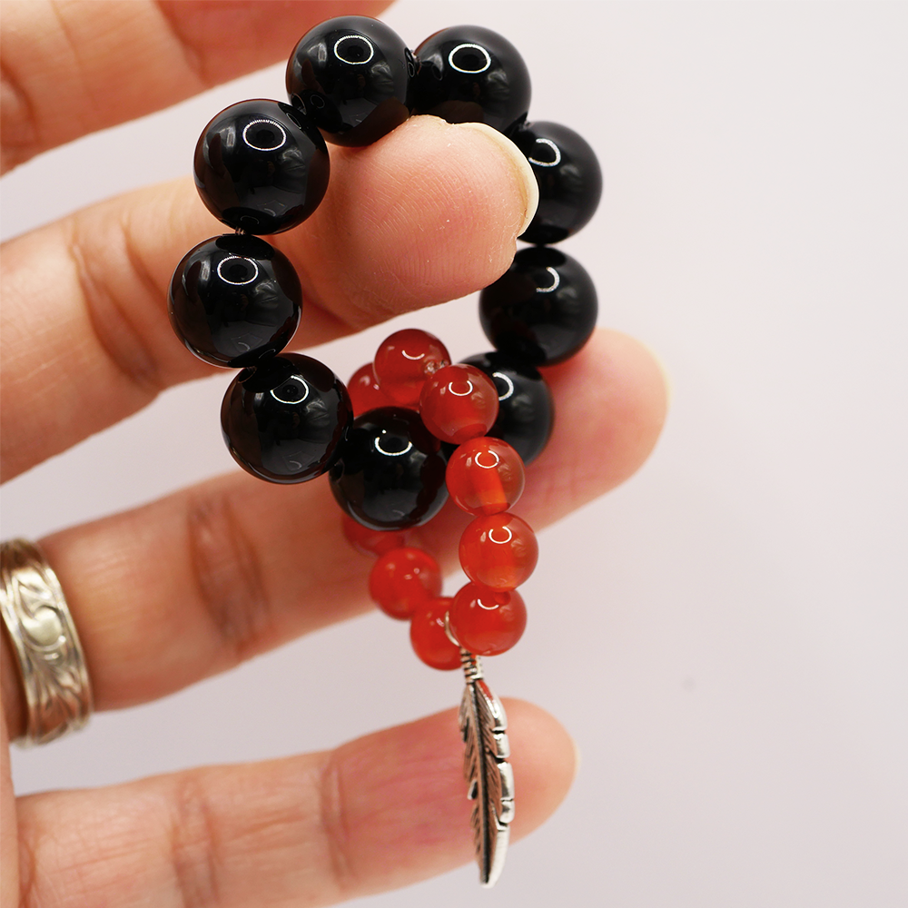 こちらはオニキスと黒に生える渋めな赤の赤メノウを使用してます。