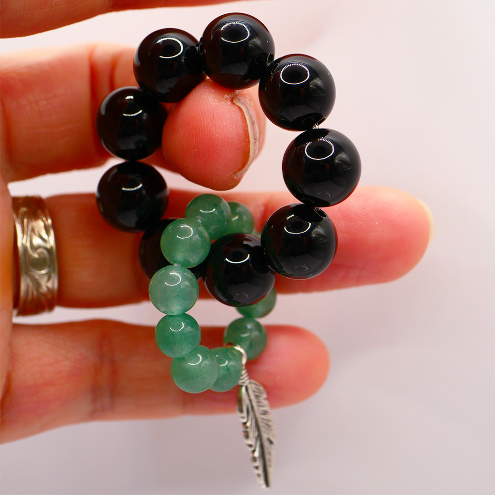 こちらはオニキスと自然な緑色のアベンチュリンを使用してます。